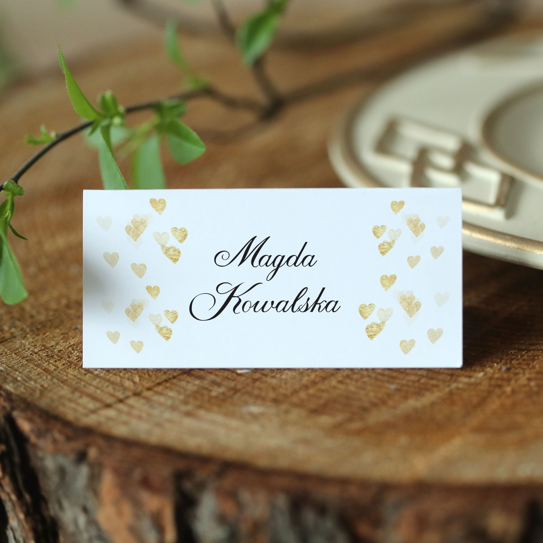 Piękne winietki ze złotymi serduszkami na Twój stół