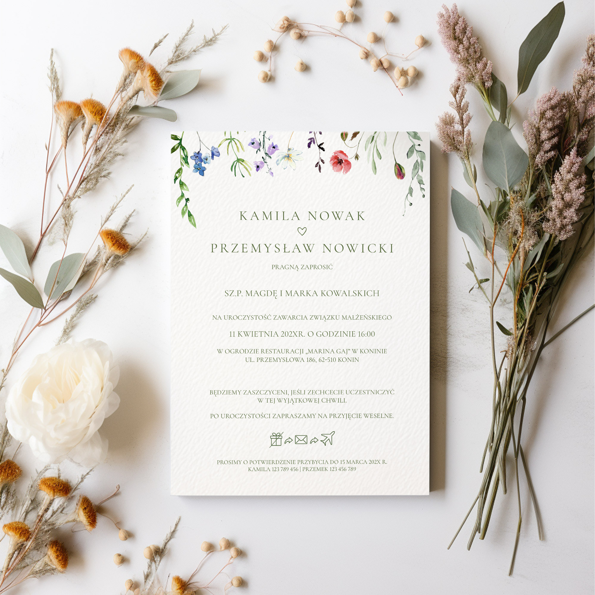 Zaproszenia ślubne Polna łąka - 10x15 jednokartowe