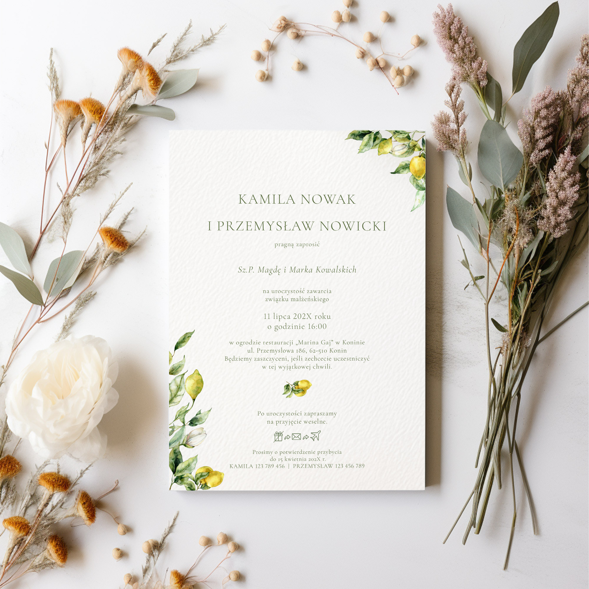 Zaproszenia ślubne z motywem cytryn 10x15