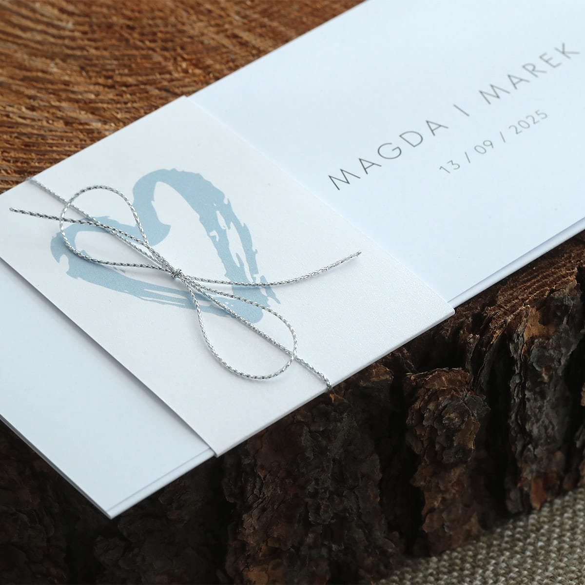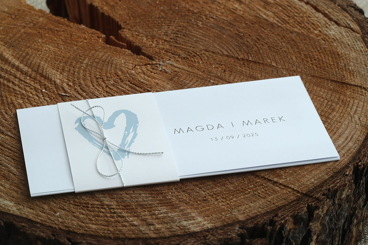sztywnym w dotyku o gramaturze 250g, - Zaproszenie jest wsunięte w obwolutę, którą trzeba zsunąć aby przeczytać treść,