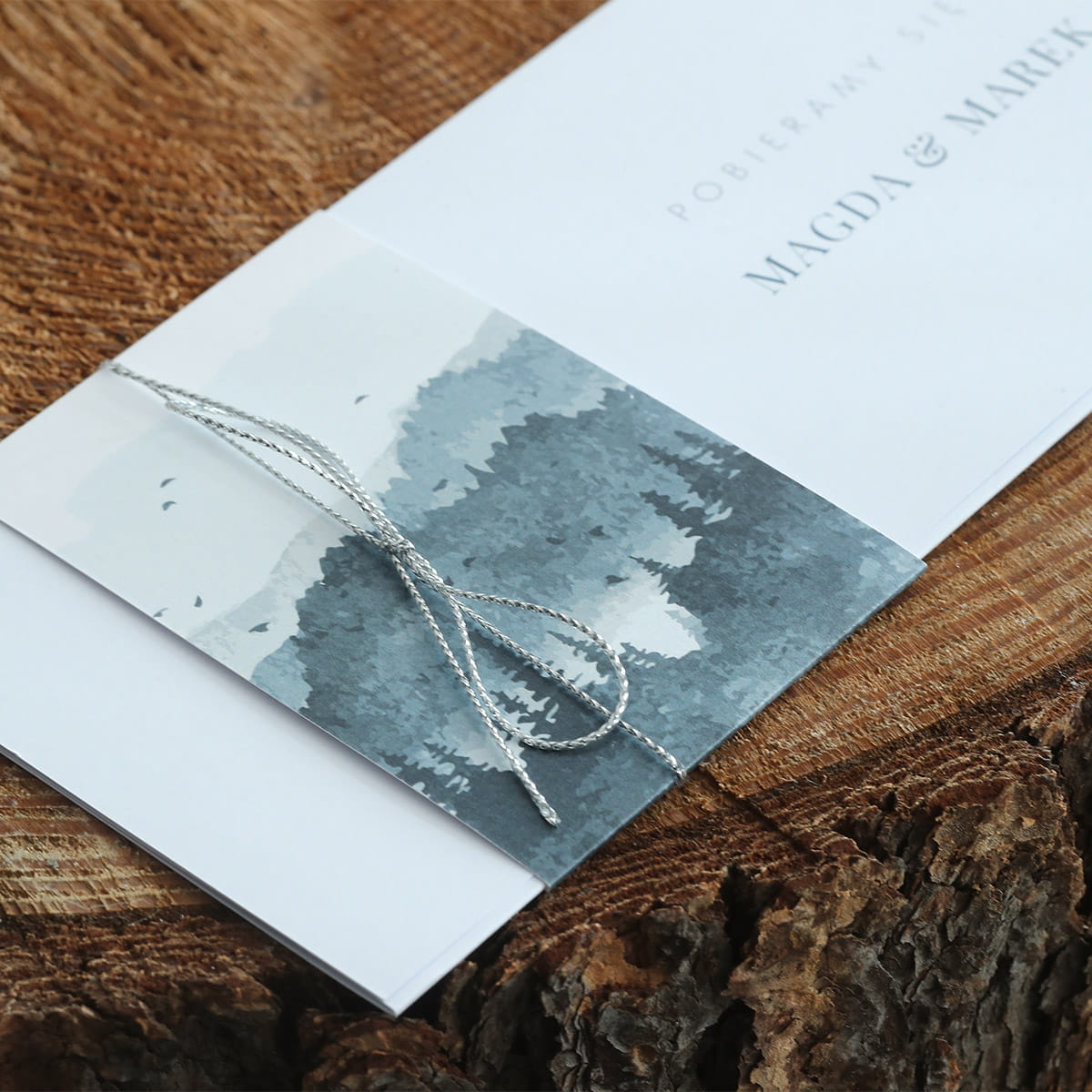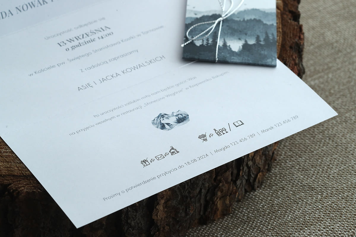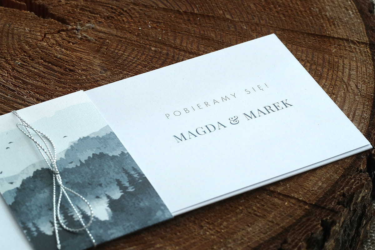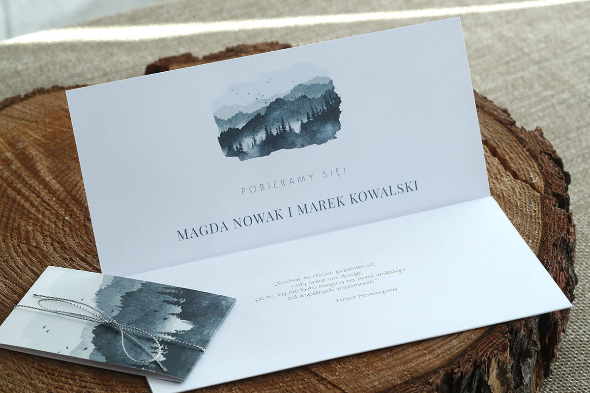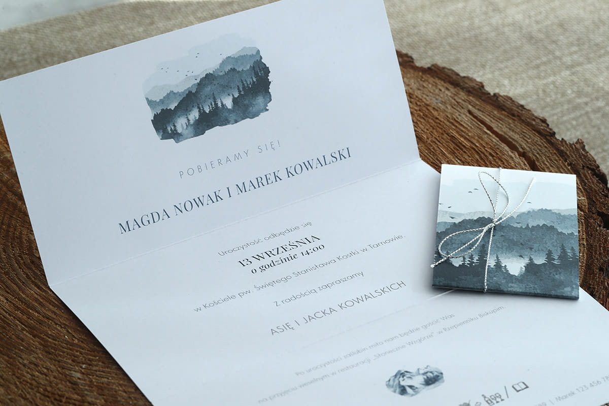 Zaproszenia ślubne z grafiką niebieskich gór