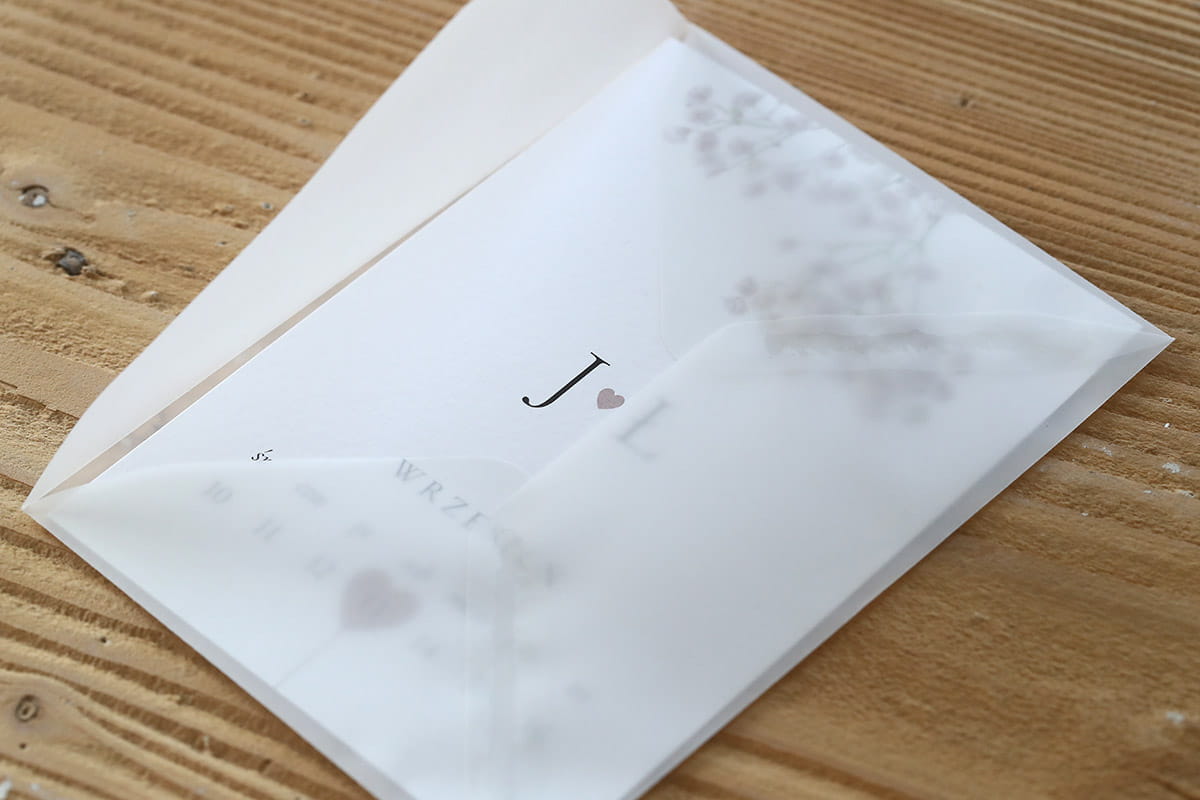 Dzięki minimalistycznemu układowi z subtelnym roślinno-kalendarzowym akcentem, zaproszenie nie traci szyku, ale zyskuje nowoczesności – świetny balans między klasyką a świeżością.