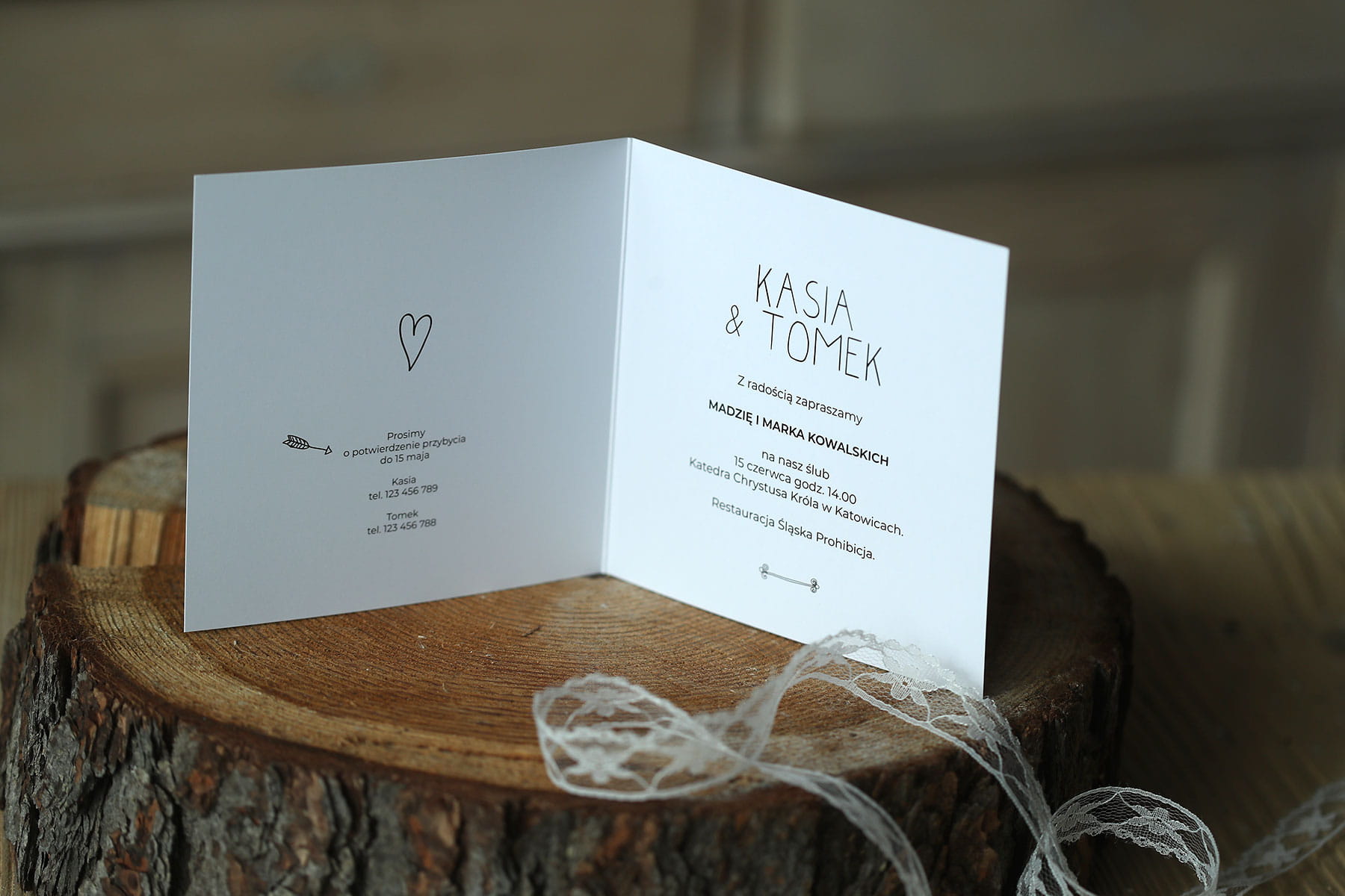 Dołącz do zamówienia treść zaproszenia uzupełnioną o wasze dane, miejsce ślubu i przyjęcia, telefonami z imionami do potwierdzenia, oraz wybrane cytaty i rebusy.