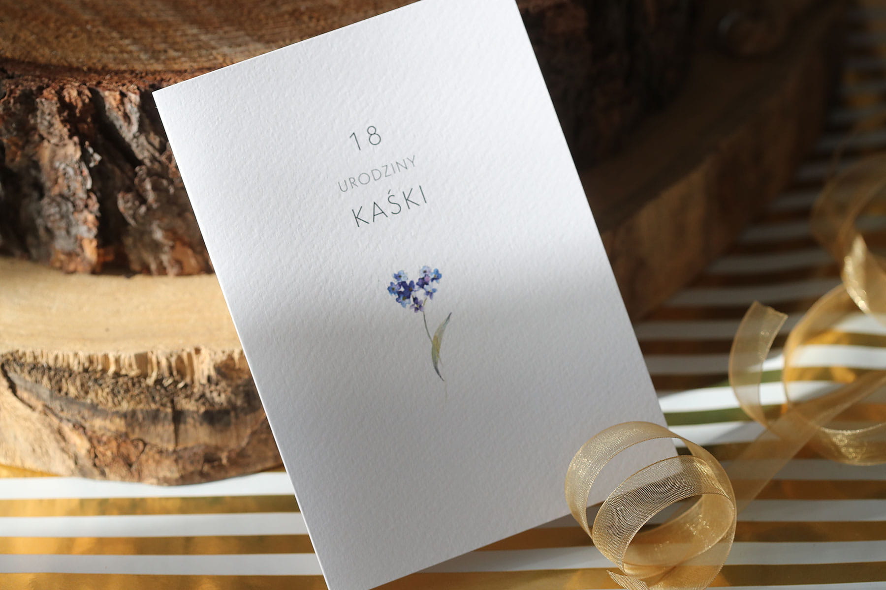 Zaproszenie z niezapominajką na 18 urodziny