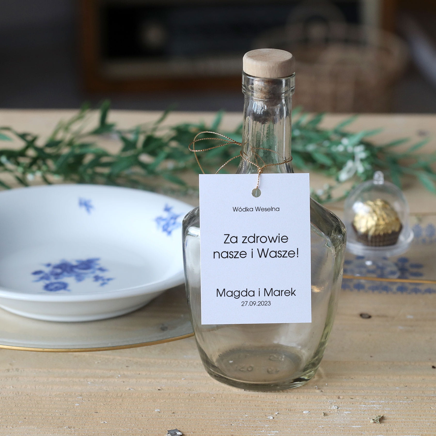 Zestaw 18 zawieszek na alkohol z minimalistycznym napisem