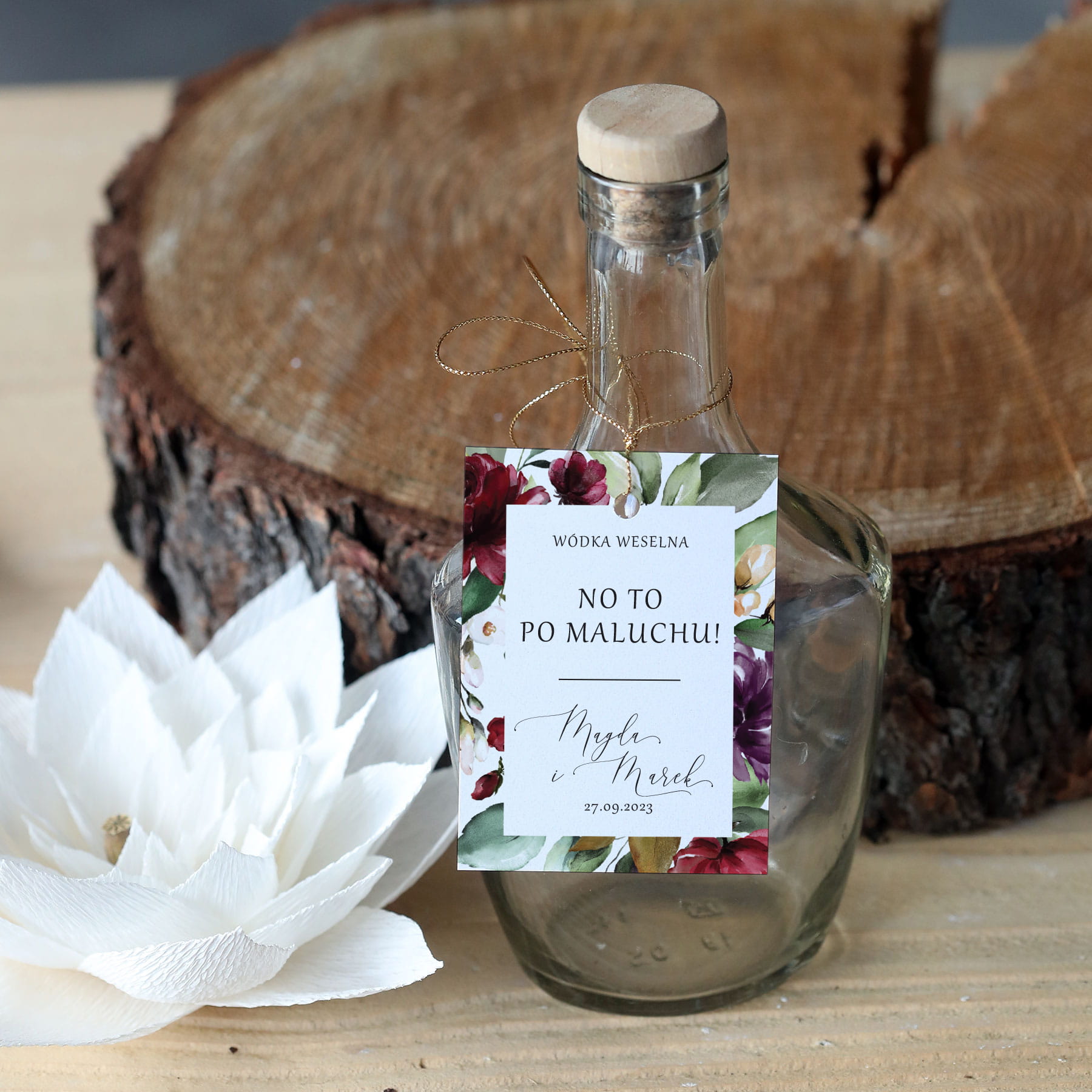 Zestaw 18 zawieszek na alkohol z bordowymi kwiatami boho