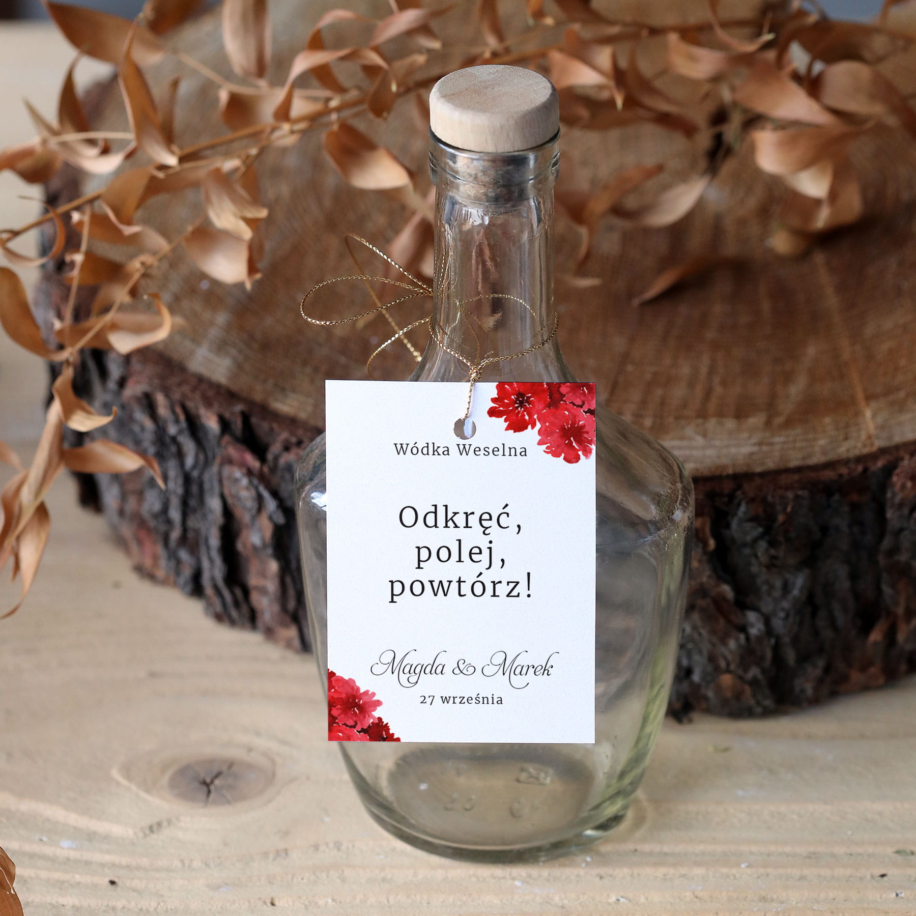 Zestaw 18 zawieszek na alkohol z czerwonymi kwiatami