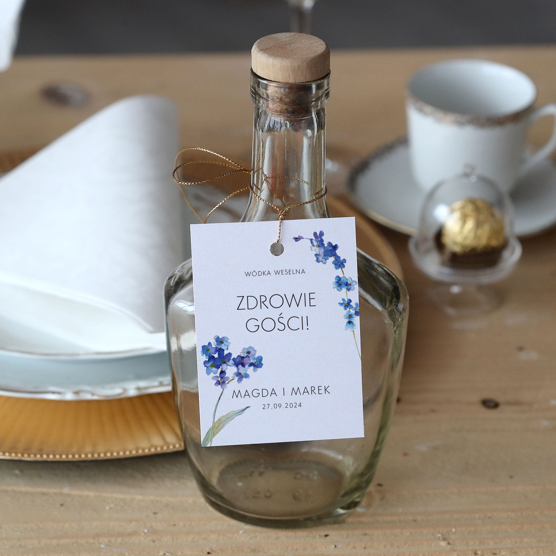Zestaw 18 zawieszek na alkohol z motywem niezapominajki