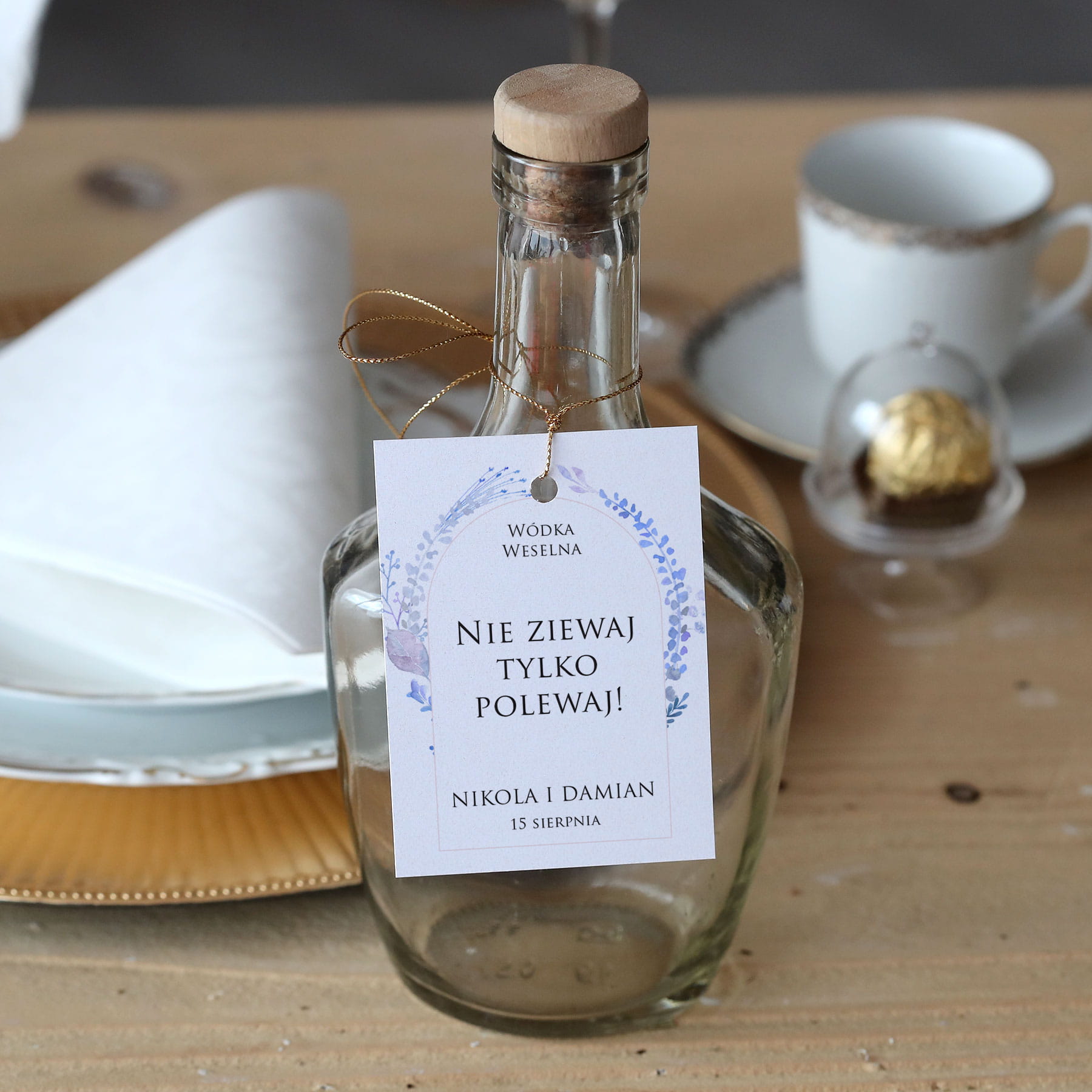 Zestaw 18 zawieszek na alkohol z niebieskim wianuszkiem