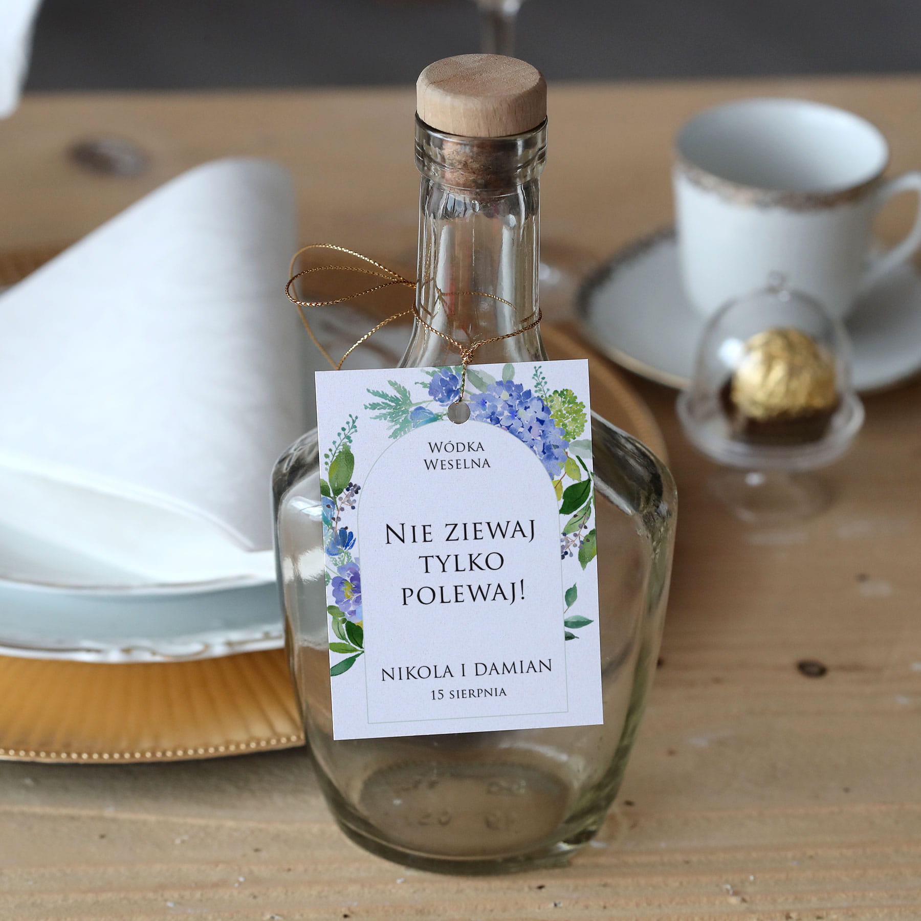 Zestaw 18 zawieszek na alkohol z niebieskimi kwiatami