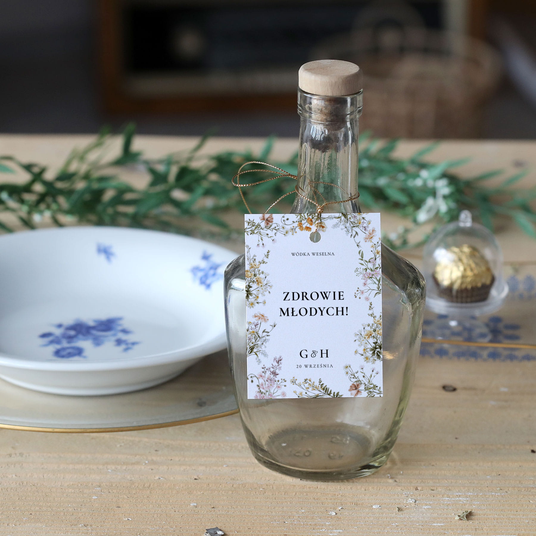 Zestaw 18 zawieszek na alkohol z rustykalnym motywem polnych kwiatów