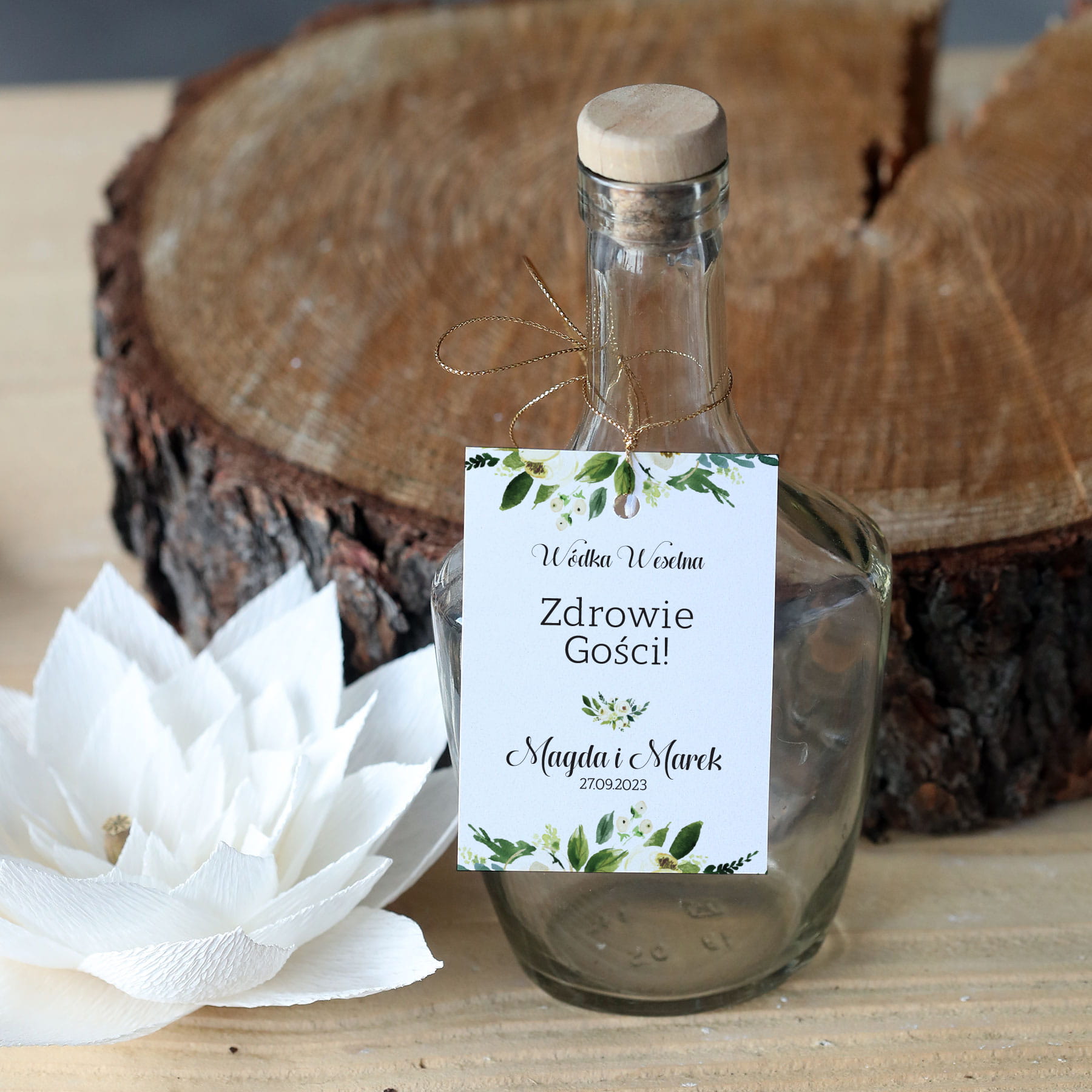 Zestaw 18 zawieszek na alkohol z zielonym motywem kwiatowym