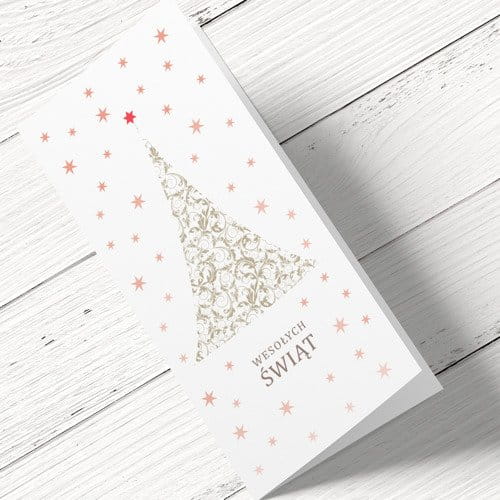 Uniwersalne Kartki świąteczno-noworoczne dla firm - wzór choinka z gwiazdkami, format DL