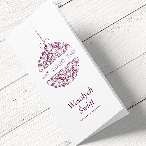 Klasyczne Kartki świąteczno-noworoczne dla firm - wzór czerwona bombka z logo, format DL