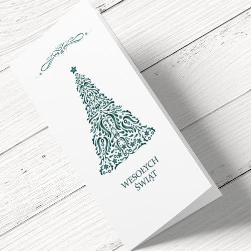 Uniwersalne Kartki świąteczno-noworoczne dla firm - wzór z zieloną choinką, format DL