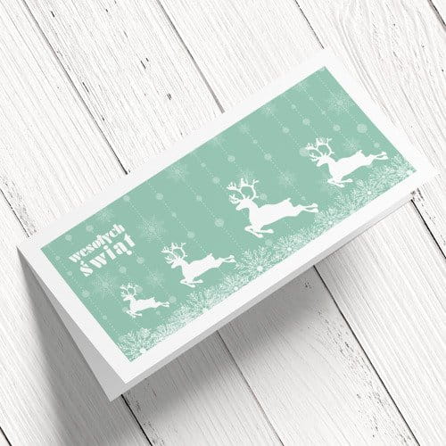 Uniwersalne Kartki świąteczno-noworoczne dla firm - wzór z reniferami , zielona, format DL
