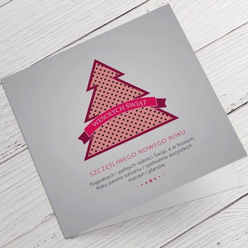 Kartki świąteczno-noworoczne dla firm - wzór z choinką w wesołe kropki