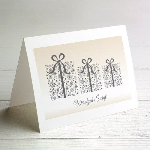 Kremowe kartki świąteczne firmow z prezencikami - 10x15 cm