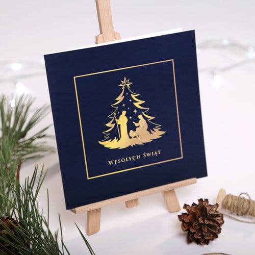 Kartki Firmowe - Szopka bożonarodzeniowa - wersja kolorystyczna granat - 14,5x14,5 cm