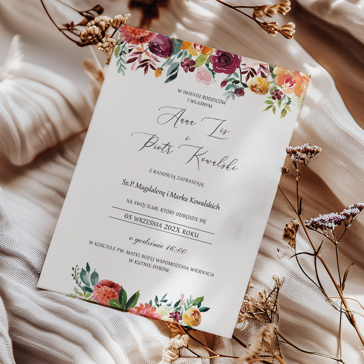 Zaproszenie Ślubne - Boho Namiętność Kwiatów