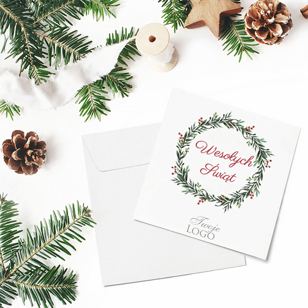 Kartki firmowe na Boże Narodzenie z motywem zimowego wianka - 14,5x14,5 cm