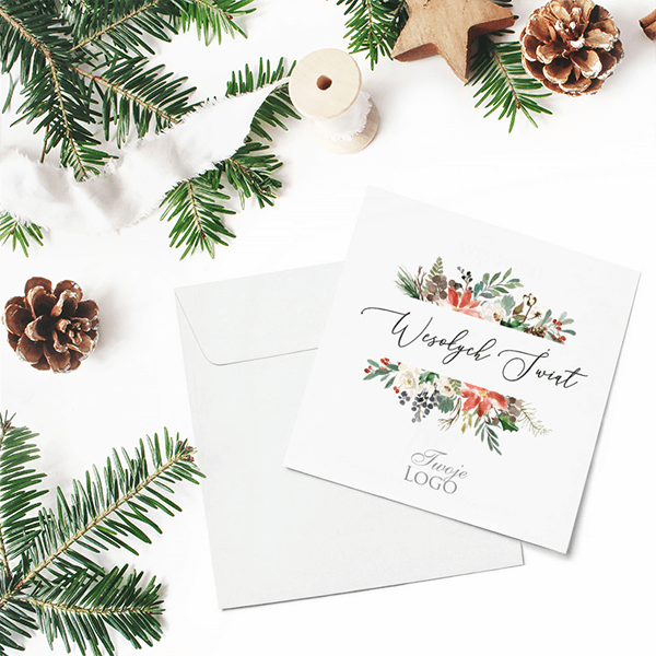 Kartki firmowe na Boże Narodzenie z delikatnym kwiatowym motywem - 14,5x14,5 cm