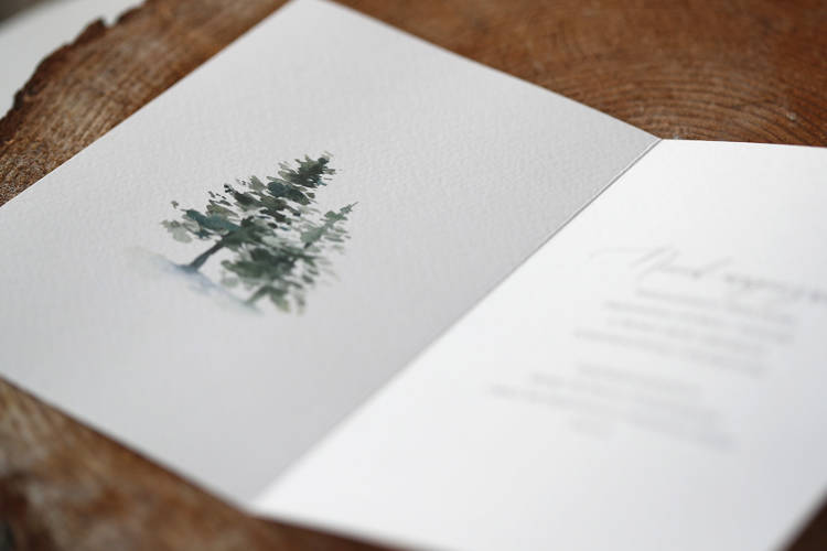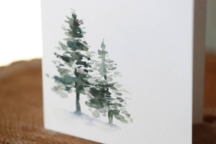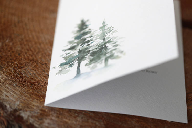 Delikatne kartki firmowe na Boże Narodzenie z akwarelowym lasem - 12x17 cm