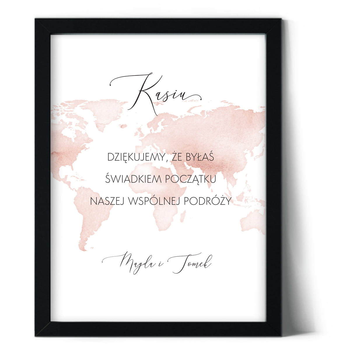 Treść na plakacie jest dowolna. Jeśli jesteście miłośnikami podróży, to idealny wzór dla Was, żeby podziękować świadkowej lub świadkowi. Piękny element wystroju wnętrza i pamiątka na długie lata.