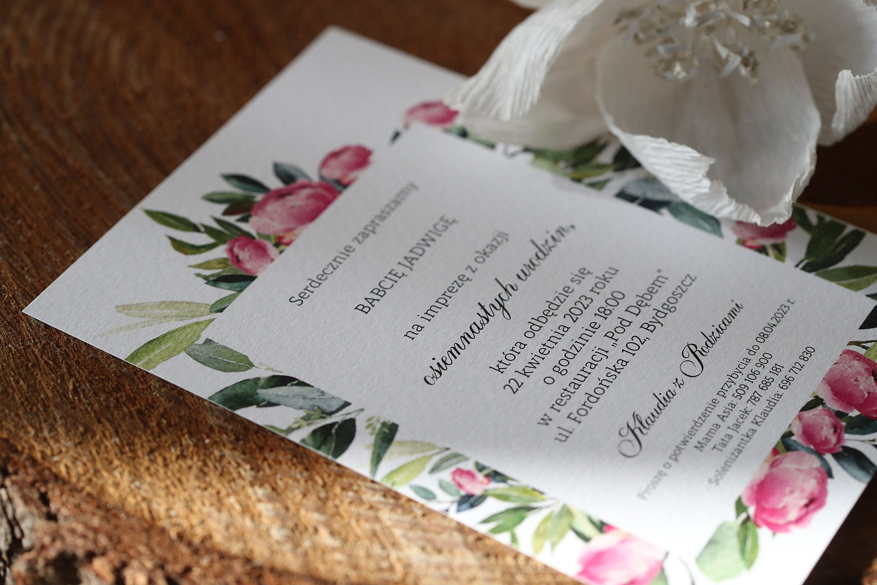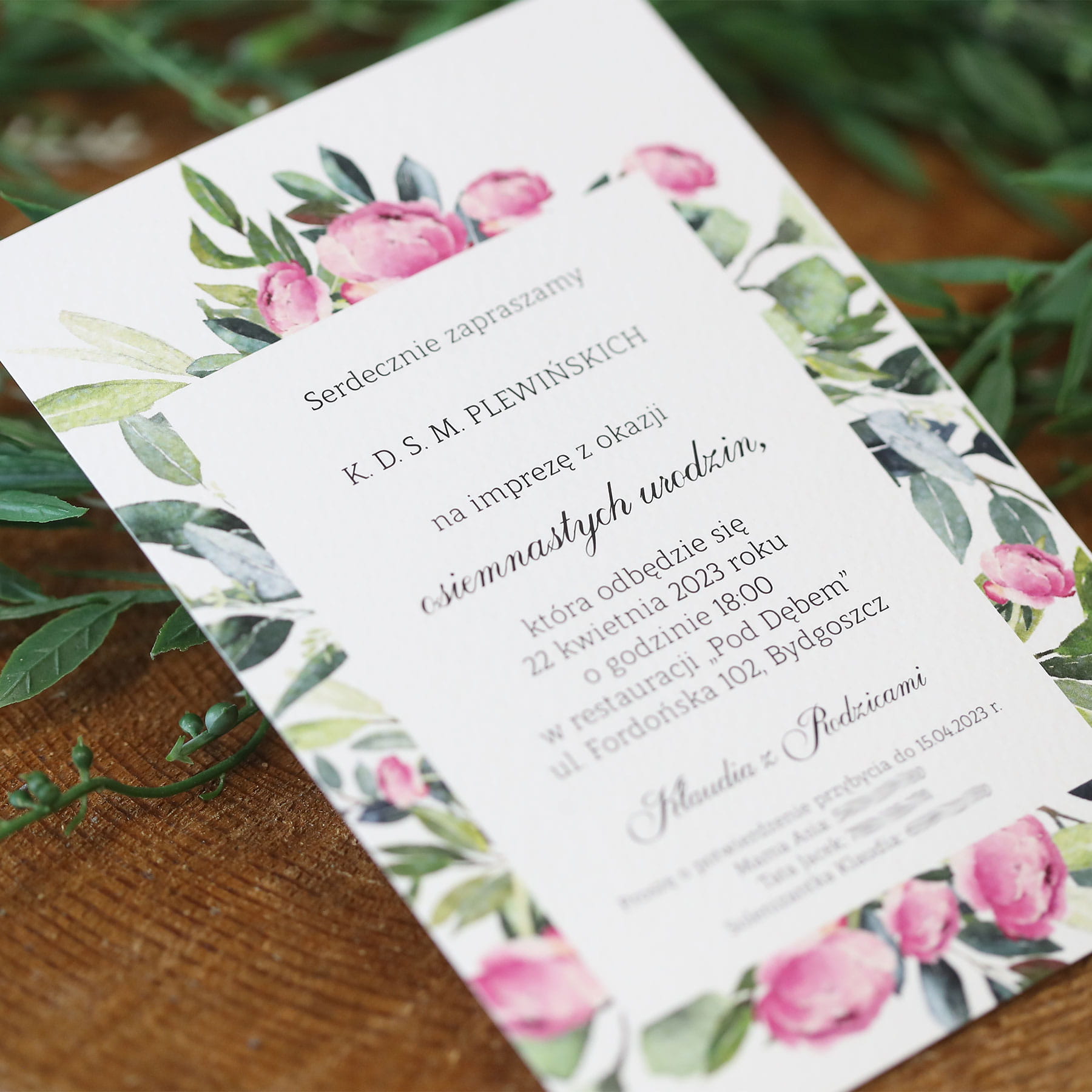 Zaproszenia na 18, z piękną piwonią!