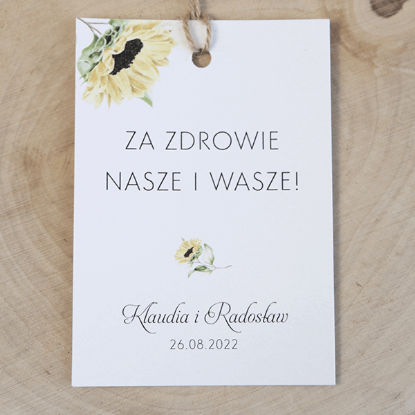 Zestaw 18 zawieszek na alkohol ze słonecznikiem