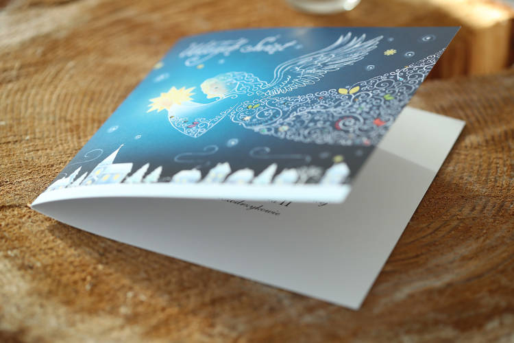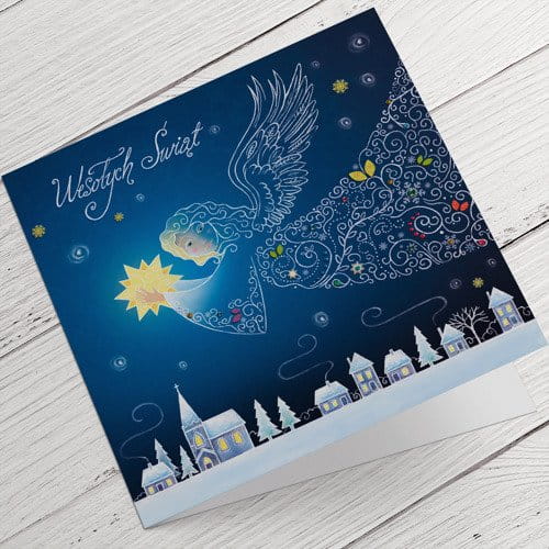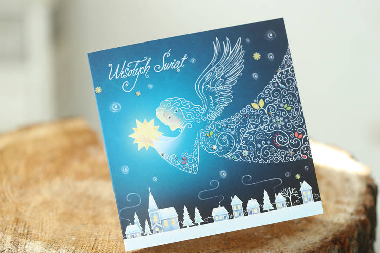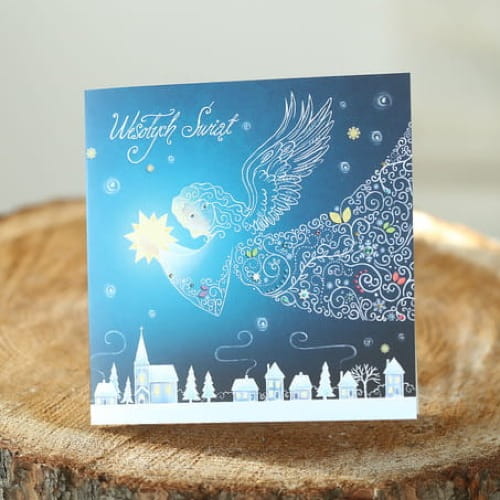 Kartki Firmowe na Boże Narodzenie - Anioł z gwiazdą - 14,5x14,5 cm